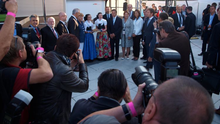 Viele Fotografen nutzten das Motiv der traditionellen sorbischen Begrüßung. Die Kanzlerin wurde von zwei Kindern in sorbischer Tracht mit Brot und Salz begrüßt.