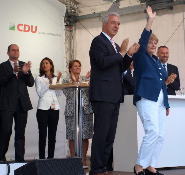 Die Bundeskanzlerin verabschiedet sich vom Publikum.